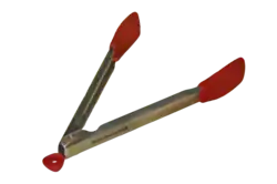- Tongs that have long arms terminating in small flat circular ends of tongs and are pivoted at a joint close to the handle used to handle delicate objects. Common fire-tongs, used for picking up pieces of coal and placing them on a fire without burning fingers or getting them dirty are of this type. Tongs for grilling, and tongs for serving salad or spaghetti are kitchen utensils of the same type. They provide a way to move, rotate and turn the food with delicate precision, or fetch a full serving in one grab.