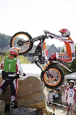 Toni Bou's first race win was in 1999, when he obtained the Catalan Cadet Trials Championship title at the age of 12. In 2001 he was the Spanish Junior Trials Champion. His World Trials debut was a 2003 appearance in Bangor, Ireland,[2] he ended the season 13th in the World Outdoor Trials Championship, and 1st in the European Outdoor Trials Championship. His first World Trials win was in 2006 when he ended 5th in the outdoor championship, and 3rd in the indoor one. In the same year he was the Spanish Outdoor Trials Champion.