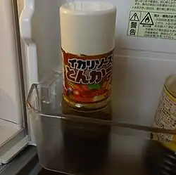 Tonkatsu sauce or katsu sauce is a Japanese sauce served with tonkatsu (pork cutlet). It is a thick (viscosity over 2.0 pascal-second, per JAS Standard) Japanese Worcestershire-type sauce. It is similar to the British and Irish brown sauce, and can include a fish sauce, tomatoes, prunes, dates, apples, lemon juice, carrots, onions, and celery among its ingredients.[1][2]