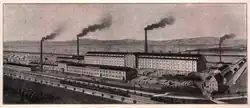 ![]() The factory behind River Leimbach and Mannheim–Karlsruhe–Basel railway just north of Wiesloch-Walldorf station, c.1925. The area would later contain the Wiesloch Feldbahn and Industrial Museum and Leimbach Park. | |