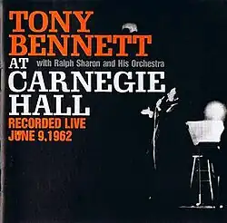 Tony Bennett at Carnegie Hall is a 1962 live album by Tony Bennett. The June 9th concert was directed by Arthur Penn and Gene Saks. Carnegie Hall had not featured a pop performer until April 23, 1961 when Judy Garland recorded her legendary concert.[3]