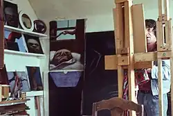 Fomison was born in Christchurch and studied at Linwood High School.[2] He studied sculpture at the School of Fine Arts at Canterbury University, where he was taught by Rudi Gopas, and during these early years he continued an interest in archaeology which had begun in high school. He also compiled photographic essays during this period. Fomison began painting in earnest in 1960–61. In 1964, he travelled to England and Spain and lived in the former for three years before returning to Christchurch in 1967.[3] During his time in England, he was hospitalised at Banstead Hospital after succumbing to drug addiction. After his return from Europe and the UK Fomison painted a series of work based on paintings and images he had seen on his travels. Many of these works, painted on hessian, were completed over several years.[4] Typical is his Study of Holbein's ' Dead Christ’ 1971–73[5] based on the Holbein original 'The Dead Christ in the Tomb in the collection of the Kunstmuseum in Basel.[6]