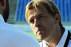 At the World Cup, the Matildas started slow, narrowly defeating Ireland 1–0 and losing to Nigeria 3–2. The team turned it around, defeating Olympic champions Canada to top their group, followed by victories over Denmark and France to reach the semifinals of the World Cup for the first time. However, the Matildas were defeated by England 3–1 at the semifinal,[13] and then 2–0 by Sweden, to finish in 4th place; this was an Australian football team's highest finish at a FIFA World Cup, male or female. He was not be offered another contract however, after the Matildas' poor performances at the 2024 Summer Olympics and being eliminated at the group stage.[14]