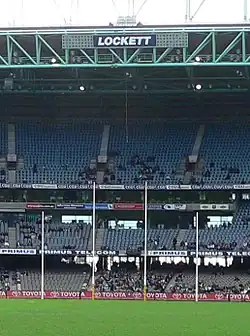 Lockett backed up his spectacular return with ten goals the following week against Brisbane Bears (he had seven goals by half time)[14] and another haul of 12 goals against Sydney (in which he kicked St Kilda's first five goals)[15] to take his overall tally to a remarkable 34 goals in three games. In the Round 10 match against Essendon, however, before the biggest home crowd at Moorabbin since 1981, St Kilda suffered stage fright, conceding a 44-point lead at quarter time and eventually losing by 28 points.[16] Essendon coach Kevin Sheedy sacrificed an extra player in defence to cut off the supply to Lockett (who only managed four goals), while the Bombers' team pressure and discipline also contributed significantly to the win.[16]