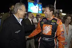 On May 20, during NASCAR's All Star Race, Stewart and Kenseth wrecked again. Each driver claimed it was the other one's fault with Stewart saying, "if (Kenseth) thinks it's my fault and I (caused the wreck) he's screwed up in his head." Following the wreck, several media outlets proclaimed the new Stewart-Kenseth rivalry as must-see TV.[24] The so-called rivalry was short-lived as Kenseth and Stewart participated as friends in a joint promotional tour for DeWalt and The Home Depot;[25] Kenseth also appeared in September at Stewart's Eldora Speedway in the NEXTEL PRELUDE with NASCAR drivers, as well as the ARCA Truck Series event there.