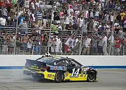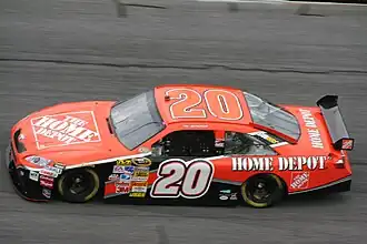 On July 5, 2008, during the Coke Zero 400 at Daytona, Stewart started feeling ill and turned his car over to former Joe Gibbs Racing teammate J. J. Yeley, who took the car to a 20th-place finish after getting involved in two wrecks in the last five laps.[33] Stewart earned his first and only win of the season in the AMP Energy 500 at Talladega on October 5, 2008, driving for Subway as his sponsor, making it his last win with Joe Gibbs Racing. On the final lap, Stewart was passed by Regan Smith (the rookie of Dale Earnhardt, Inc.) who beat Stewart to the line. NASCAR declared that Smith had made an illegal pass under the yellow line, and awarded the victory to Stewart.[34]