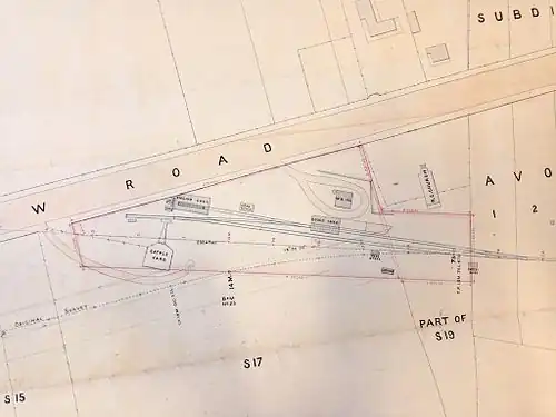 The original railway stopping point on the narrow gauge Clackline–Miling line was where a railway platform is indicated on the north side of the track on the Public Works Department plan for that time.[2][3]