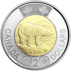 - ^ "Canada's two-dollar coin and its polar bear turn 10 this year" Archived November 5, 2010, at the Wayback Machine. CNW Telbec, August 28, 2006.