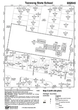 - ^ a b c d e f g h i j k l m n o p q r s t u v w x y z aa ab ac ad ae af ag ah ai aj ak al am an ao ap aq ar as at au av aw ax ay az ba bb bc bd be bf bg bh bi bj bk "Toowong State School (entry 602845)". Queensland Heritage Register. Queensland Heritage Council. Retrieved 18 December 2017.