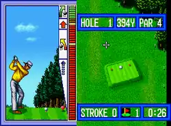 Top Player's Golf is a golf game similar to Lee Trevino's Fighting Golf and other golf titles from the era, where players compete in matches on various golf courses set across two country clubs. There are three game modes and four golfers to choose from at the main menu:[2] Stroke Play is the main single-player mode where one player compete against CPU-controlled opponents in 18 holes. Match Play is similar to the first mode, except that two players compete against each other and the player with the lowest score wins.[2] The last mode, Nassau Game, in which one player competes with either a CPU or another human opponent and the player with the lowest score wins, with events such as longest drive or closest to the pin contests appearing on occasions.[2] Before starting each mode, players have the option of having a caddie for advice and tips in how to complete a course. If a memory card is present, the players are allowed to save their progress and resume into the last course the game saved at.[2]