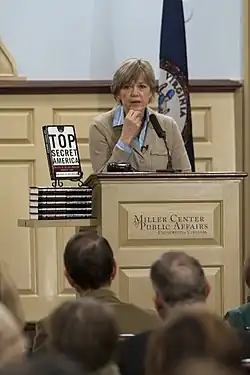 {{cite news}}: CS1 maint: multiple names: authors list (link) - ^ "Dana Priest: Top Secret America Is "Here to Stay"". PBS FRONTLINE. September 6, 2011. Retrieved October 8, 2011.