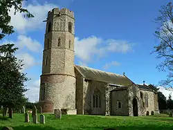 The parish church is dedicated to Saint Margaret. It is one of 124 existing round-tower churches in Norfolk.[7]
