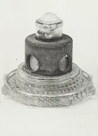 The Topfmine A had a flattened dome-shaped case with a raised flat circular pressure plate on the top surface surrounded by a circular shear groove. The case was normally made from pulped wood and cardboard mixed with tar for waterproofing. However, sometimes the case was made from bituminous coal waste. The SF 1 fuze was inserted into the underside of the mine and was placed inside a large glass plug which sealed the bottom of the mine. A secondary fuze well was provided on the bottom of this plug for installing anti-handling devices. The SF 1 fuze was constructed of glass and wood and contained a detonator and booster charge.