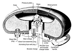 The mines used a case made of compressed wood-pulp, cardboard and tar along with glass plugs and components designed to be undetectable by Allied mine detectors. Often the only metallic part of the mines was the detonator.
