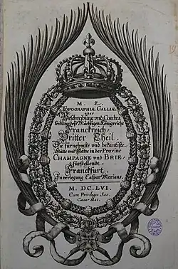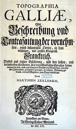 Topographia Galliae (1655–1661) is a German-language series of illustrated books created by engraver Matthäus Merian and writer Martin Zeiler, and published in Frankfurt. It describes cities and towns in 17th-century France.[1][2] Wenceslaus Hollar also contributed to its engravings.[3]
