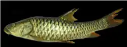 Tor remadevii, the orange-finned mahseer, also known as the hump-backed mahseer, is a Critically Endangered species of freshwater fish endemic to the Western Ghats of India.[2] It is restricted to the Kaveri river basin.