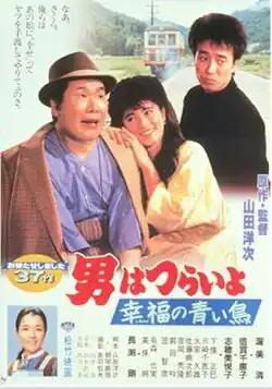 Tora-san's Bluebird Fantasy (男はつらいよ 幸福の青い鳥, Otoko wa Tsurai yo: Shiawase no Aoi Tori) aka Tora-san, Bluebird of Happiness[1] is a 1986 Japanese comedy film directed by Yoji Yamada. It stars Kiyoshi Atsumi as Torajirō Kuruma (Tora-san), and Etsuko Shihomi as his love interest or "Madonna".[2] Tora-san's Bluebird Fantasy is the thirty-seventh entry in the popular, long-running Otoko wa Tsurai yo series.