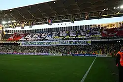 In November 2011, Torcida Sandžak started a friendly relationship with Fenerbahçe Istanbul's fan group Genç Fenerbahçeliler, abbreviated Genç FB. During a home game against Istanbul BB, the Genç FB and 1907 Gençlik stand deployed a giant banner reading "Kalbimiz Seninle Novi Pazar", which means "Novi Pazar, our heart is with you".[4] Then, in a Serbian SuperLiga game against Radnicki Kragujevac, Torcida Sandžak stand deployed a giant banner reading "Sancak'ta atıyor, Fenerbahçe'nin kalbi", which means "Heart beats for Fenerbahçe in Sandžak".[5] On March 2, 2012, Fenerbahçe's Genç FB and 1907 Gençlik supporter groups' members were invited to Novi Pazar for the match between against Partizan Belgrade. Thousands of Torcida Sandžak members welcomed Genç FB and 1907 Gençlik's 17 members.[6] On April 7, 2012, about 50 FK Novi Pazar supporters drove to Istanbul for the match Fenerbahçe against Antalyaspor. A few hundred Fenerbahce fans welcomed the FK Novi Pazar fans during their arrival in Istanbul.[7]