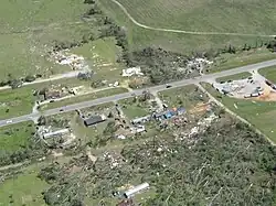 ![]() EF3 damage south of Geiger, Alabama. | |