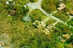 Tornado damaged a frame house and destroyed its garage. Ten homes sustained moderate to major damage, with several others along with businesses suffering minor damage. Another garage was destroyed as well. | |