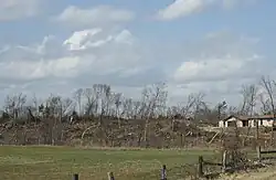 | Two outbuildings destroyed, three more were heavily damaged, and numerous trees and power poles were snapped.[44] | ||||||||