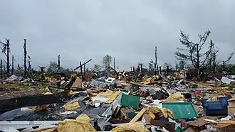 ![]() Remains of a farmhouse that was leveled at high-end EF3 strength near Great Bend, Kansas | |