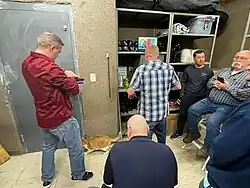 They were to enter a pre-designated shelter area such as a safe room, basement, storm cellar, or the lowest building level.[9] If there was no basement, then to the center of an interior room on the lowest level (closet, interior hallway) away from corners, windows, doors, and outside walls. The goal has been to put as many walls as possible between the safe room and the outside. They were advised to get under a sturdy table or other object and use arms to protect their head and neck, and not open windows.[9] |