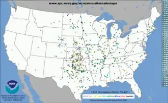 - ^ "Severe Weather Database Files (1950-2021)". Storm Prediction Center. National Oceanic and Atmospheric Administration. July 11, 2022. Retrieved November 12, 2022.