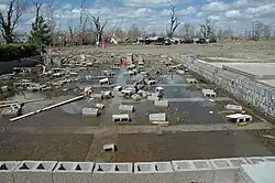 A damaging outbreak of 18 tornadoes impacted areas from southwestern Texas northward into east-central New Mexico and the Oklahoma Panhandle. At the beginning of the outbreak an EF1 tornado struck Logan, New Mexico, tossing and/or rolling about 50 manufactured homes and recreational vehicles resulting in 12 injuries.[29] Later, an EF2 tornado west of both McDonald and Tatum snapped power poles and threw a heavy water trough several hundred yards.[30] The worst tornado of the day was another destructive EF2 tornado that moved directly through Clovis, damaging or destroying over 500 homes and other structures, killing two, and injuring 33 others. This was the first tornado to result in fatalities since October 1974 and tied the tornado with another tornado in Wagon Mound on May 31, 1930, for the deadliest tornado in state history.[31] The last tornado of the day was another EF2 tornado west of Morton, Texas that destroyed irrigation systems, partially destroyed the Star Route Gin, and snapped utility poles.[32][33] Isolated severe storms refired the next day from the Texas Panhandle northward into western and north central Nebraska. Mainly hail damage occurred, but eight weak tornadoes did touch down.[34] In all, 26 tornadoes touched down, resulting in two fatalities and 45 injuries.[35]