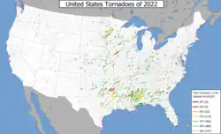There were 1,331 preliminary filtered reported tornadoes,[6] and 1,176 confirmed tornadoes in the United States in 2022.