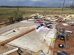 On April 29, a moderate risk for severe weather was issued for portions of eastern Kansas and southern Nebraska, including a 15% risk of tornadoes. Later that evening, several tornadoes struck the central Great Plains, most of which were weak. This included an EF1 tornado near St. George, Kansas that caused roof damage to a house and an outbuilding, destroyed a windmill and a carport, flipped irrigation pivots, and snapped trees. Another EF1 tornado passed near Herington, damaging the roofs of homes, destroying silos and outbuildings, and snapping trees in the town of Parkerville before dissipating. The most significant tornado of the event was a well-documented and destructive EF3 tornado that tore through Andover, Kansas, causing major structural damage to a YMCA branch, tossing vehicles, and destroying numerous homes. An elementary school in Andover was also damaged, a pet supplies shop was obliterated, and many trees were snapped or debarked. Three people were injured and 1,074 buildings were damaged in and around Andover, 321 of which were destroyed..[49][50] There were also three indirect injuries and total damage was $41.5 million.[51][52] On October 26, 2022, at the AMS 30th Conference on Severe Local Storms, the European Severe Storms Laboratory presented evidence that this EF3 tornado potentially had winds of at least 118.0 metres per second (264 mph) using photogrammetry.[53] At the conference, they also showed a graphic of the measured instantaneous wind gust matching within the range of IF4 and IF5 on the International Fujita scale, which does have a wind speed measurement damage indicator.[53] A multiple-vortex EF1 tornado also destroyed barns and outbuildings near Rosalia, east of El Dorado, and caused minor damage within the town of Rosalia itself before dissipating. Farther north, a few weak tornadoes also touched down in Nebraska, and severe storms impacted Iowa and Missouri as well, where reports of hail and damaging straight-line winds were received. [54][55] Farther south, a brief EF0 tornado struck near Fort Myers, Florida, as well, causing minor roof, carport, and fence damage.[54][56] A few weak tornadoes touched down in Missouri, Illinois, and Arkansas the next day, none of which exceeded EF0 intensity. This included an EF0 tornado that damaged or destroyed machine sheds and damaged a couple of houses near Perryville, Missouri. A total of 29 tornadoes were confirmed as a result of this outbreak; and with the exception of the Andover tornado, all of them were weak.[57]