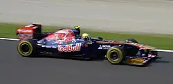 In 2011, the car was driven by Sébastien Buemi and Jaime Alguersuari, with test driver Daniel Ricciardo being guaranteed the opportunity to drive the car in the first practice session of a race weekend at all twenty races in the season (Ricciardo was signed by Hispania Racing as a replacement for Narain Karthikeyan from Round 9 of the championship in Great Britain).[2] The car was unveiled on 1 February at the Circuit Ricardo Tormo in Valencia, Spain.[3]
