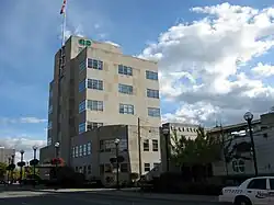 The TH&B's second train station in Hamilton, built in 1932-1933, was the first building in Canada to adhere to the International Style.[4] The station was refurbished in 1996 and is now used by GO Transit for both bus and train service as the Hamilton GO Centre.
