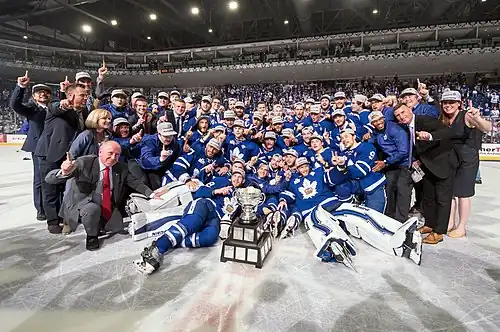 During the 2017–18 AHL season, the Marlies won their first Calder Cup after a 4–3 series win over the Texas Stars in the finals.[9] It was the first professional hockey title for a Toronto-based team since 1967.