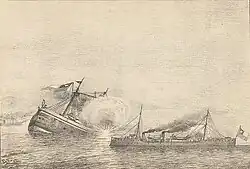 On 26 May 1877, during the Romanian War of Independence, the Romanian spar torpedo boat Rândunica attacked and sank the Ottoman river monitor Seyfi.[11] This was the first instance in history when a torpedo boat sank its targets without also sinking.[12]