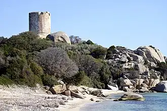 The Tower of Caldarellu or the Tower of Figari (Corsican: Torra di Caldarellu) is a Genoese tower located in the commune of Pianottoli-Caldarello (Corse-du-Sud) on the southwest coast of the Corsica. The tower sits at an elevation of 16 metres (52 ft) on the north shore of the Baie de Figari.