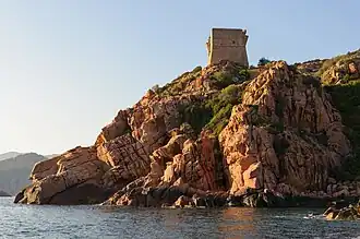 The Tower of Portu (Corsican: Torra di Portu) is a ruined Genoese tower located in the commune of Ota (Corse-du-Sud) on the west coast of the Corsica. The tower sits on a rocky outcrop at a height of 45 metres (148 ft) in the Gulf of Porto.