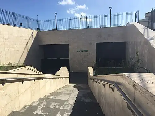 Torre Maura is an underground station of Line C of the Rome Metro. It is located at the intersection between the Via Casilina, Via dell'Aquila Reale and Via Walter Tobagi, near the Grande Raccordo Anulare. The stop serves the area of Torre Maura and provides an interchange with the Tobagi station on the Rome-Giardinetti railway.[1]