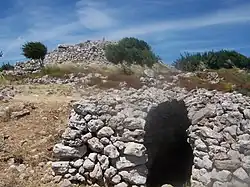 In addition to the three talayots, there are remains of defensive walls and peripheral houses had fortified outer walls.