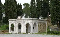 The marble terrace is inspired by the Renaissance Venetian style of Jacopo Sansovino, who adorned the park and some ruins with a monumental fountain.