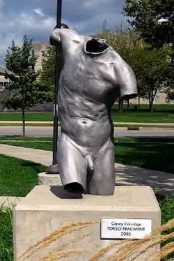 Torso Fragment, a public sculpture by the American artist Casey Eskridge, is located on the Indiana University–Purdue University Indianapolis (IUPUI) campus, near downtown Indianapolis, Indiana. The piece was donated to IUPUI and is located outside of the west entrance to Eskenazi Hall on the IUPUI campus. Eskenazi Hall houses Indiana University’s Herron School of Art and Design and is located at 735 W. New York Street in Indianapolis. The sculpture was created in 2005.
