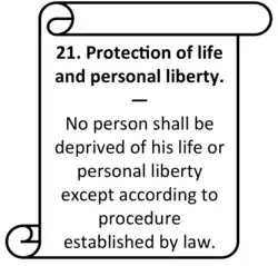 Like the United Kingdom and British Columbia,[66] but unlike Ontario[67] and most jurisdictions in the United States, Indian tort law does not traditionally recognise invasion of privacy or intrusion on seclusion as a tort.[68] Nevertheless, there is a shift in jurisprudence toward recognising breech of confidentiality as an actionable civil wrong.[69] Proponents of protection for privacy under Indian tort law argue that "the right to privacy is implicit" in Article 21 of the Constitution of India, which guarantees protections for personal liberties.[68] Despite the lack of a tort addressing violations of privacy by private individuals, the Supreme Court recognised privacy as a constitutional right in 2017.