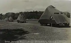 The Tortuga (Spanish for Turtle) was an armored vehicle designed and built in Venezuela in 1934, during the rule of Juan Vicente Gómez. It was assembled at the Puerto Cabello shipyard by Engineer Tomás Pacanins. First displayed at a military parade in the city of Maracay, the vehicle's existence was meant to send a clear message to neighboring Colombia - which had created several border and political incidents since its victory over Peru in the Leticia Incident - as was the whole parade. On December 23, 1934, the Tortuga was first revealed to the public, in conjunction with two Italian Ansaldo CV 33 infantry tanks.