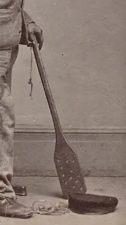 Historian Charles S. Sydnor reported that "Paul, the headwaiter of the hotel" in Grenada, Mississippi was accused of helping slaves escape north (most likely by the town's two railroad connections); after whipping him with rawhide failed to elicit a confession, his accusers escalated to something called "the hot paddle," which was "a thin piece of wood with holes bored through it, and it was applied to the naked flesh." According to Sydnor, Paul never confessed.[13]