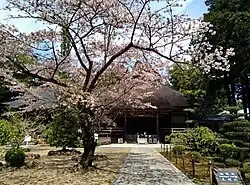The temple was burned down many times during wars, but in 1558, the main hall was rebuilt by Chōsokabe Kunichika and Chōsokabe Motochika. In 1655, the second daimyō of Tosa Domain under the Tokugawa shogunate, Yamauchi Tadayoshi, donated the Sanmon. The Kondō of the temple was rebuilt in 1558 by Chōsokabe Motochika and is a nationally designated Important Cultural Property (ICP).[10] It houses two statues of Yakushi Nyorai, one from the Heian period and one from the Kamakura period, both of which are also ICPs.[11] [12] The temple's bonshō dates from the early Heian period and is the oldest temple bell in Kochi Prefecture. It is also an ICP.[13]