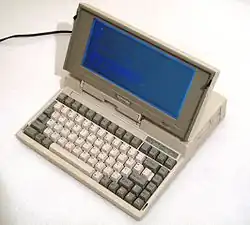 It is equipped with an Intel 80C86 processor at 9.54 MHz, 1 MB RAM of which 384 KB can be used for LIM EMS or as a RAMdisk, CGA graphics card, one 720 KB 3.5" floppy drive and one 20 MB hard drive (Some models had two floppy drives and no hard drive controller card.) MS-DOS 3.30 is included with the laptop. It is the first laptop with a swappable battery pack. Its original price was US$6,499 (equivalent to $18,000 in 2024).
