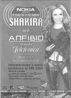 Tour Anfibio (Spanish: Amphibious Tour) is second concert tour by Colombian singer Shakira support of her fourth studio album Dónde Están los Ladrones? (1998). It started on March 21, 2000, in Lima, and ended on May 12 in Buenos Aires. The tour was sponsored by Nokia during the South American legs of the tour.