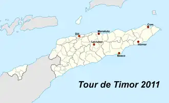 - ^ "Riders cross Tour de Timor finish line". Retrieved 8 August 2012.