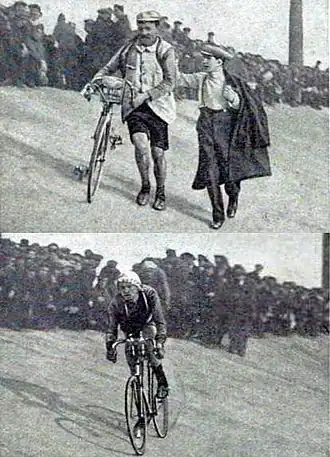 By the beginning of the 20th century, cycling was in a poor state in Belgium. Velodromes were closing and national championships on the road or track were no longer organised.[6][7] The one major Belgian race, Liège–Bastogne–Liège, was in the French-speaking South. As the gloom increased, Odile Defraye became the first Belgian winner of the Tour de France in 1912.[8] He was a 20-year-old Fleming and, although he rode for Alcyon, a French team, he symbolized a potential rise for Belgian cycling. Defraye's victory inspired August De Maeght, mayor of Halle and director of the press group Société Belge d'Imprimerie, to publish a Dutch-language sports magazine called Sportwereld.[6][9]