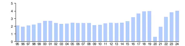 - ^ "Cyprus: International tourist trips". Our World In Data. August 17, 2024.